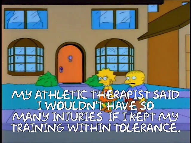 Injury due to training errors- making increases in your training (intensity, frequency, duration) faster than what your tissues can adapt to.